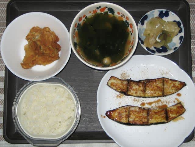 夕食:KFC、昼作った味噌汁、搾菜、茄子の蒲焼き