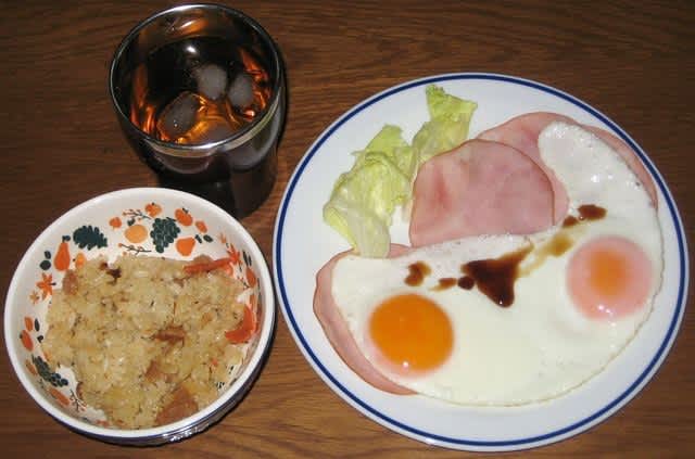 ハムエッグは頼んでおいた。食べる気にならなかったが作って貰ったので食べないとと、残り物と一緒に食べた。