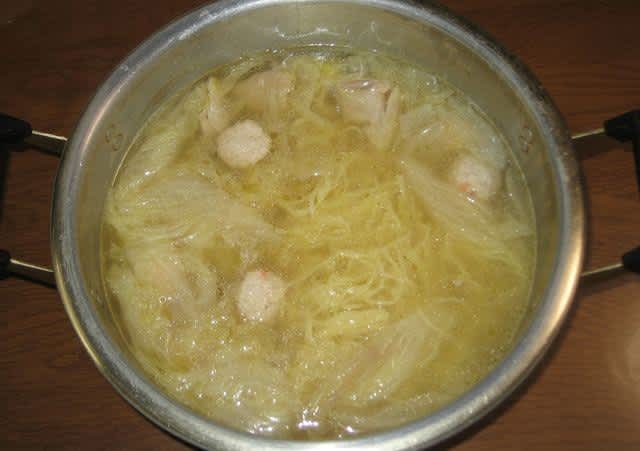 何でも、「白菜の買い置きと、お好み焼き用に買っておいたそばの期限が近い」からこれにしたかったそうだ。季節的には過ぎているけど、クーラーの効いた涼しい部屋で温かい鍋を食べるのはある意味贅沢だよな。