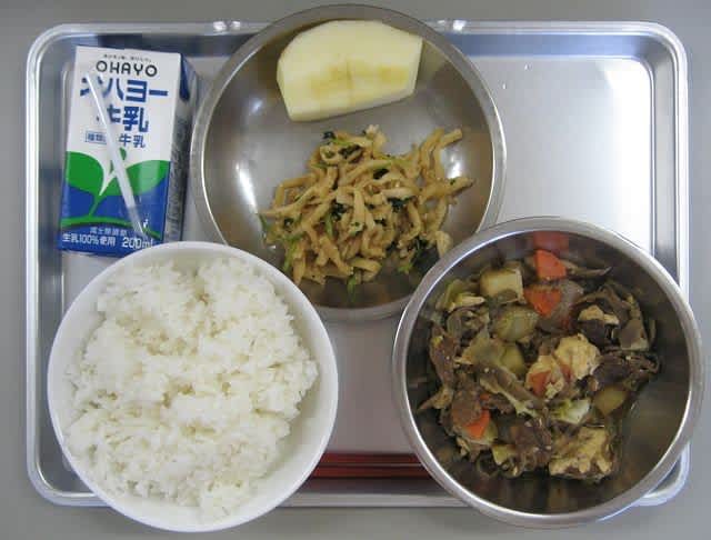 もともと食べられないと思っていたけど、やはり口の中に入れて噛むことができず、おかずは1割以下。ご飯も数口食べただけ。はりはり漬けやりんごは隣の人にあげた。牛乳は飲んだ。
