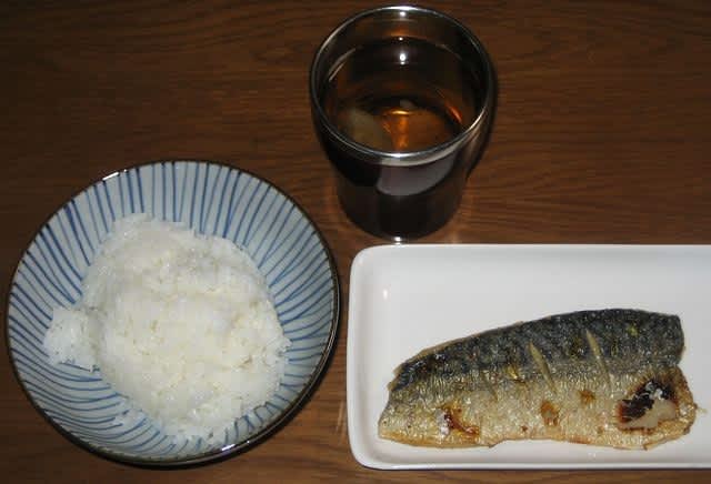 朝食:昨日の雑炊、因縁のアジフライ(小1個)