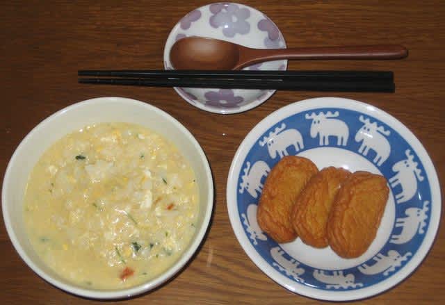 朝食:ちょっと雑炊(カニ)、さつま揚げ