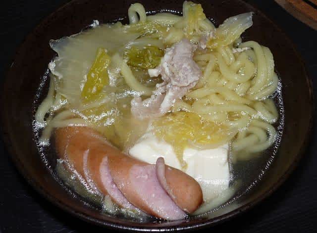 昨日の段階で白菜を煮ておいた。残っているものはお肉と豆腐くらいなので、できればもう少し何かを入れたい。もし買って来られたら練り物を入れたらいいと思うんだけど、なければソーセージを入れたらどうかと思っていた。味付けは塩ちゃんこ。麺も頼んであるんだけど、なければ袋ラーメンの麺を半分入れたらと決めていた。そうすれば余ってるものも捌けるし。