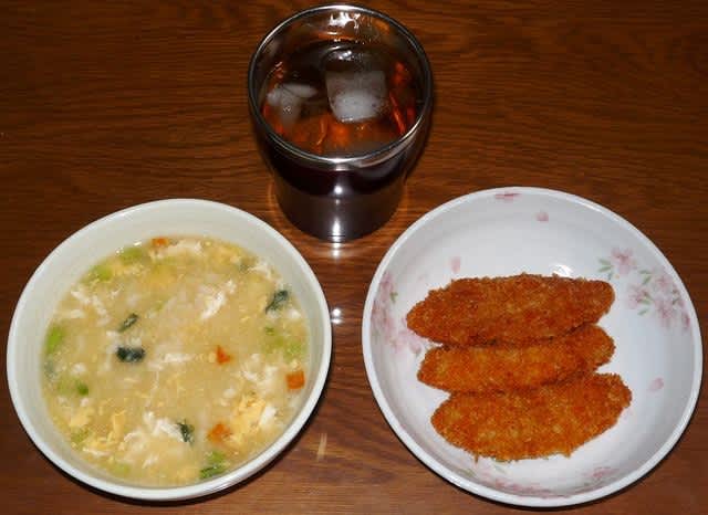 夕食:残った野菜でチャーハン、昨日の揚げなす、クリームコロッケ