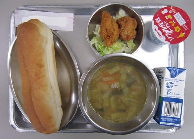 昼食:チキンカツサンド、白菜スープ、ヨーグルト