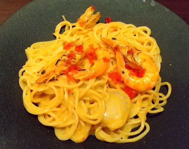 青森産帆立と有頭海老の濃厚うにクリームパスタ