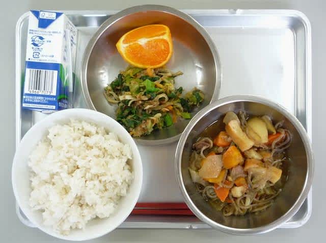 昼食:肉じゃが、麦ご飯、おかか和え、せとか