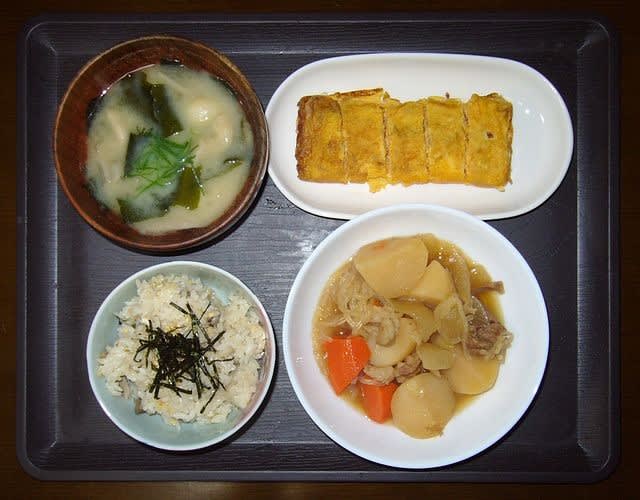 夕食:ヒラタケご飯、だし巻き、肉じゃが、ヒラタケ味噌汁
