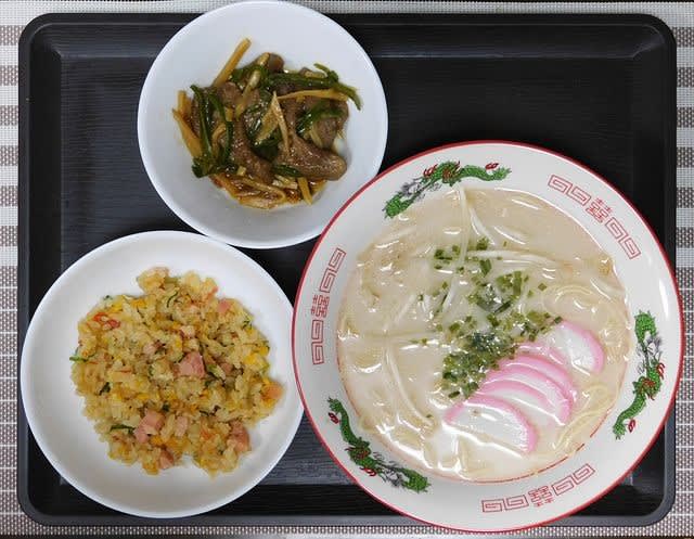 夕食:作り置き半炒飯、ただでもらった豚骨ラーメン、青椒肉絲