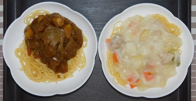 昼食:カレーとシチューで1人前パスタ