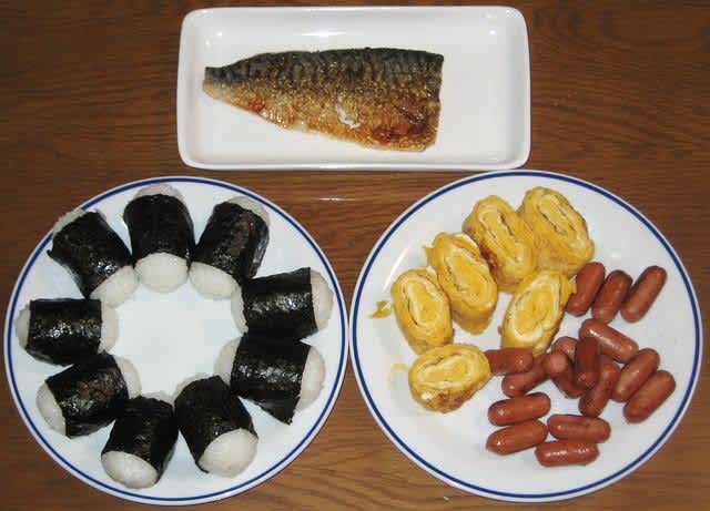 夕食:おにぎりセット、セブンのサバ