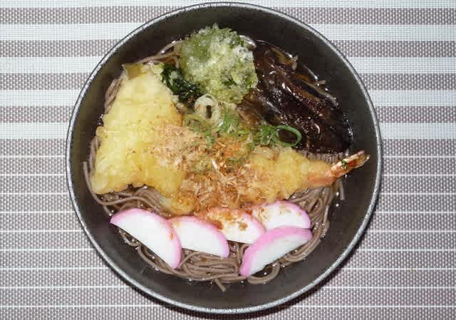 いつも13時過ぎた頃に帰ってくるのだが、今回は枝豆となぜかとんかつを買ってきてくれた。カツはまた別の時に食べることにして、残っていた天ぷらやこのために揚げていた茄子などを使って天ぷらそばにした。お汁は自作のかけそば汁で、かまぼこも天ぷらも全て使い切った。