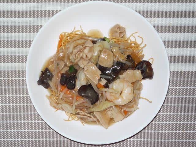 以前は、1度作ってもしばらくしてからもう1回作ればいいと思っていた。というのは皿うどんの麺は一袋に2食分入っていて、一食食べて翌日にまた食べたいと思っていなかったので、しばらくしてから作ったことがあった。すると麺が湿気っていて、考えてみれば当然なんだろうけど、連続して食べなきゃいけないことがわかった。だから昨日から今朝も連続して作ろうと思っていた。食べたのは8時過ぎてから。肉やエビは解凍しておいたけど、きくらげを水で戻さなければいけないのいけないので少し時間がかかった。うずらの卵は入れなかった。