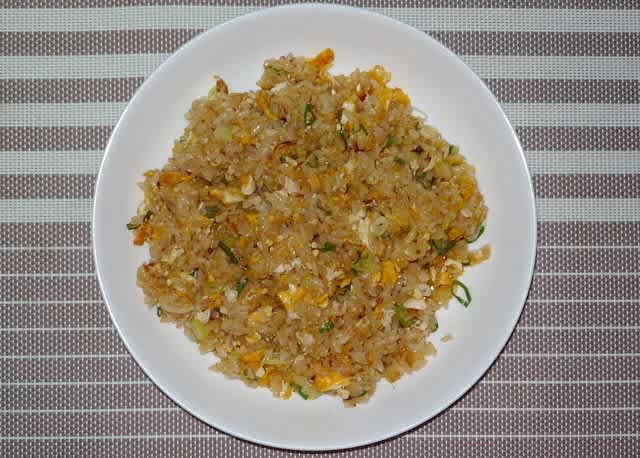 エビ飯の素は中に乾燥エビなども入っていて、それをお湯で戻して混ぜるようになっている。見るとご飯の量が多くて、300g(1合分)と書いてある。チャーハンで1人前1合は多いだろうと思ったのだが、どれぐらいご飯を使えばいいかも見当がつかず、いつもよりも多めの冷やご飯を使って作ってみた。あんまりパラパラにはならなかった。味は店で食べていたエビ飯とそう変わらないものができた。私には可もなく不可もなかったが、とても美味しいからまた食べたいと言っていた。
