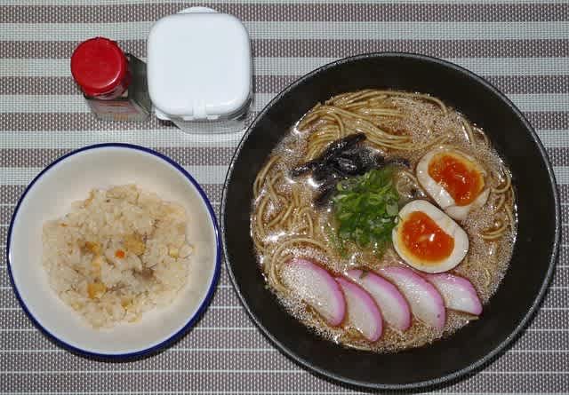先日半分だけ使ったくまモンのラーメンが半分残っていたのでそれを作った。もやしはなかったが細いキクラゲを入れるとそれっぽく見えた。一食100円にしては良いラーメンだと思う。