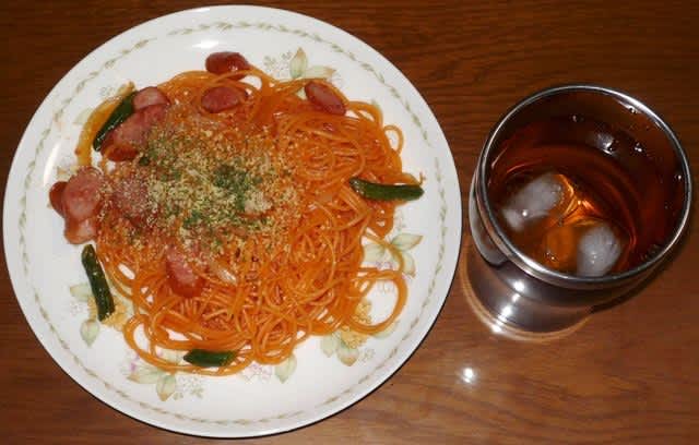 夕食:スパゲッティナポリタン(半人前)、シャインマスカット