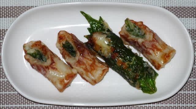 おかずに昨日作った大葉とちくわのおつまみを食べた。ちくわの穴に大葉を詰めて衣をつけて揚げたものと、穴にモッツァレラを入れて大葉で包んで揚げたもの。もう少しカラッと揚がるといいんだが、どうすればいいのだろう。